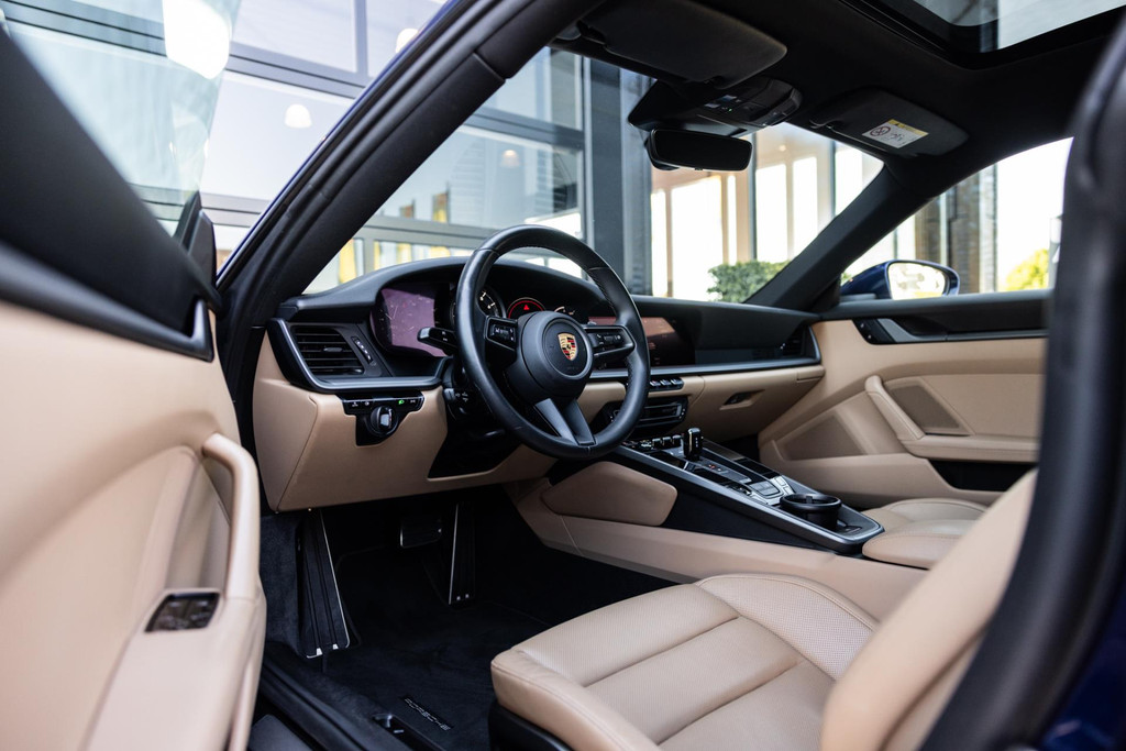 Uniek samengestelde 992 in de prachtige kleur: "Gentiaan Blauw metallic" goed onderhouden en een panoramisch schuifdak, sportuitlaat, stoelventilatie, achteruitrijcamera.
