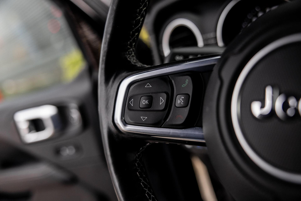 Binnenin geniet je van luxe lederen bekleding, een automatisch dimmende binnenspiegel, keyless entry & start en een hoogwaardig navigatiesysteem met full map ondersteuning. Dankzij de LED-verlichting, inclusief koplampen, achterlichten en mistlampen, ben je altijd goed zichtbaar. De Jeep is verder uitgerust met parkeersensoren (voor en achter), hill hold functie en een achteruitrijcamera, waardoor parkeren een fluitje van een cent is.