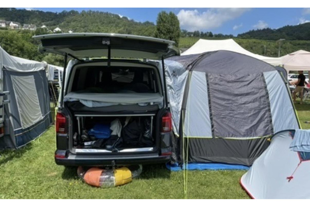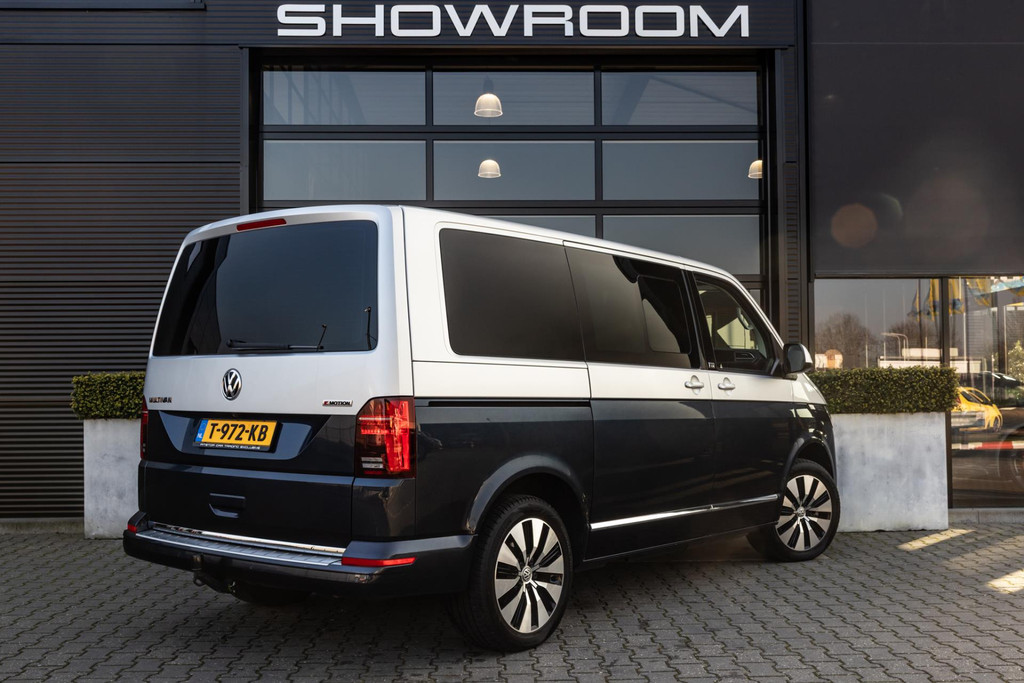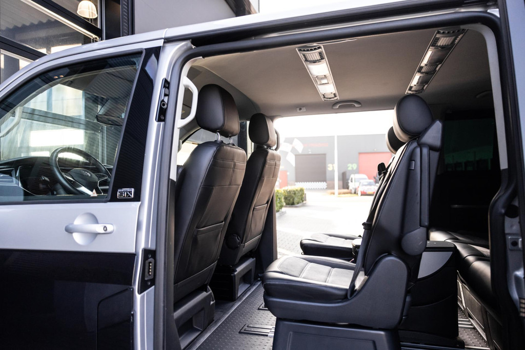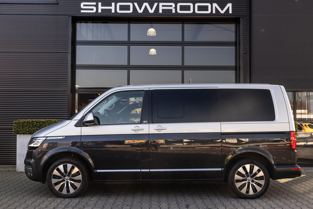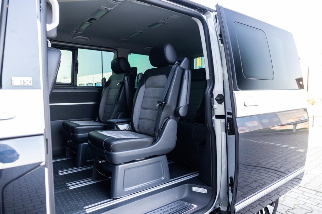 Unieke Multivan met 2-tone metallic van buiten en van binnen 8-persoons met alcantara en leer, 230v aansluiting, 4-motion, inclusief tent en slaapplek achterin, nieuwstaat, standkachel, prijs inclusief btw!