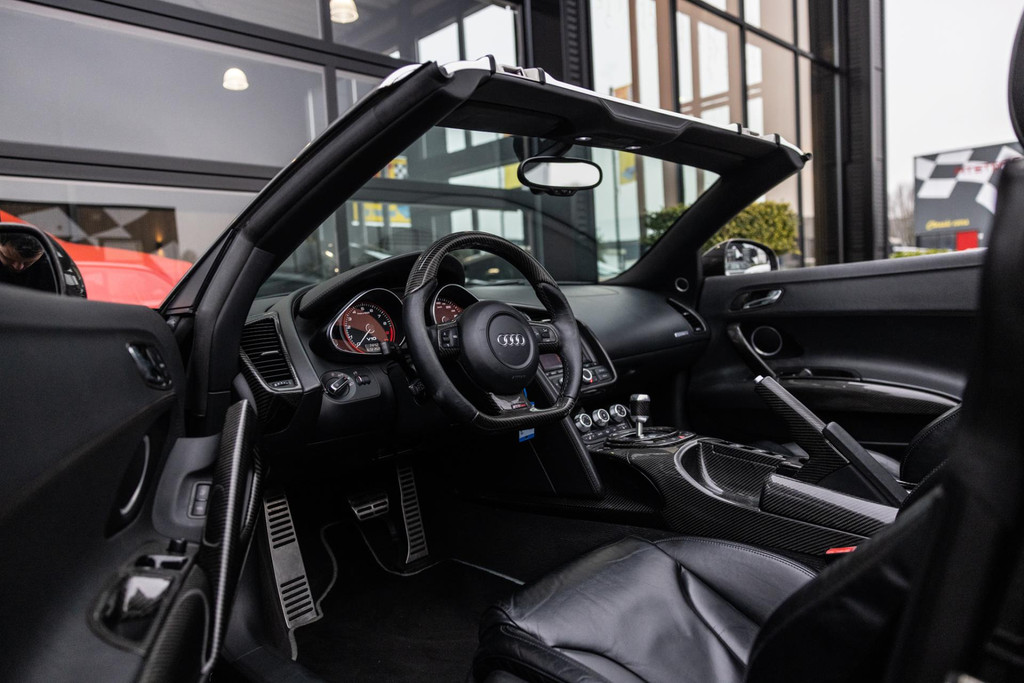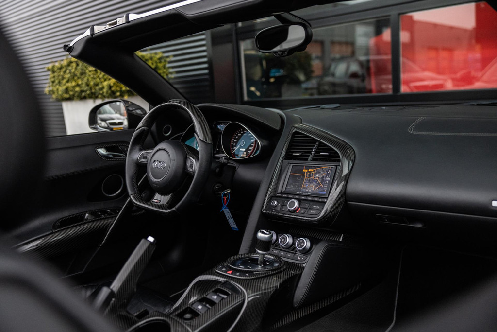 Nette en goed rijdende Audi R8 V10 Spyder, origineel Duits geleverd en historie voorhanden, Carbon interieur pakket, B&O Premium Audio, Keramische remmen, puur V10 geluid zonder OPF, rijdt en schakelt subliem