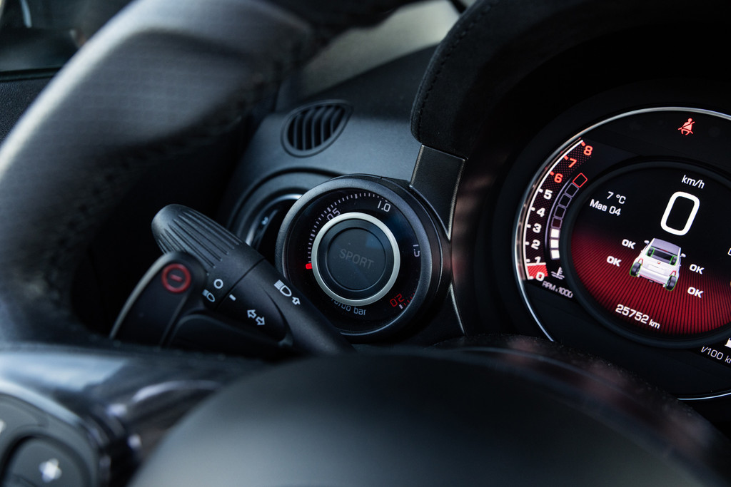 Zeer nette en goed onderhouden Fiat 500 C 1.4 T-Jet Abarth Competizione 180 PK, uniek exemplaar met een lage kilometerstand. Carbon afwerking van binnen!