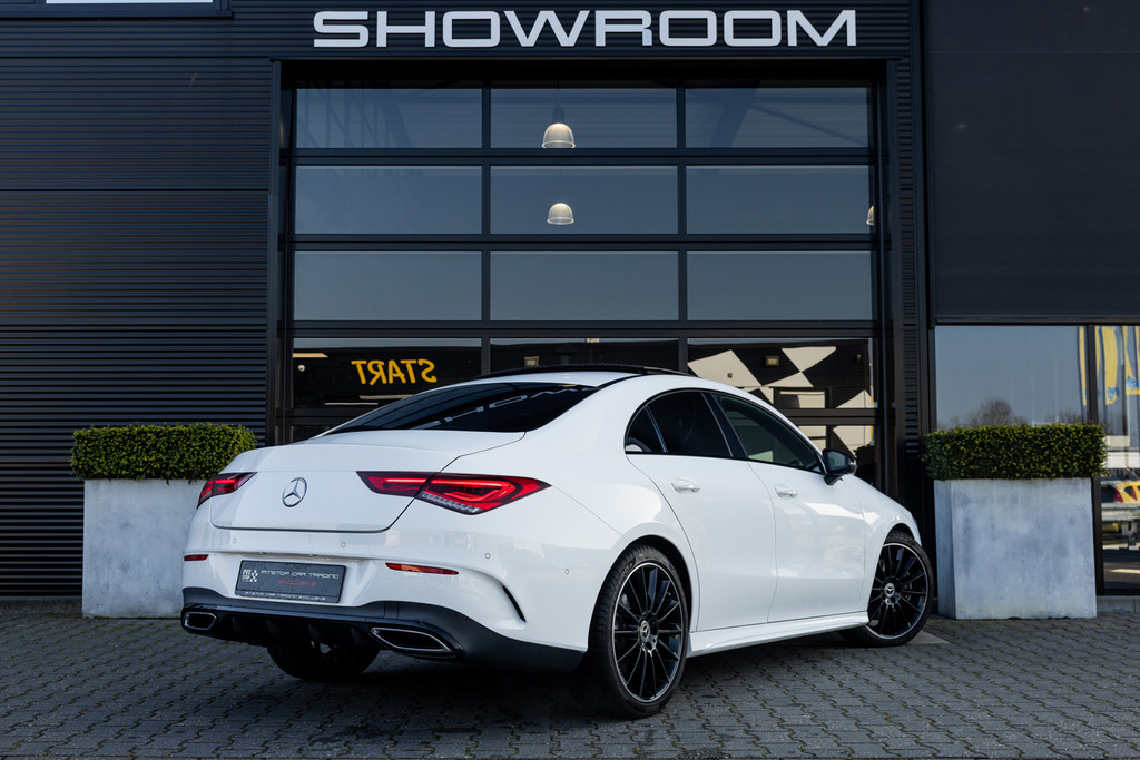 In nieuwstaat verkerende Mercedes-Benz CLA-klasse 200 Business Solution AMG. Voorzien van een panoramadak, stoelverwarming, 19-inch, achteruitrijcamera en sfeerverlichting!