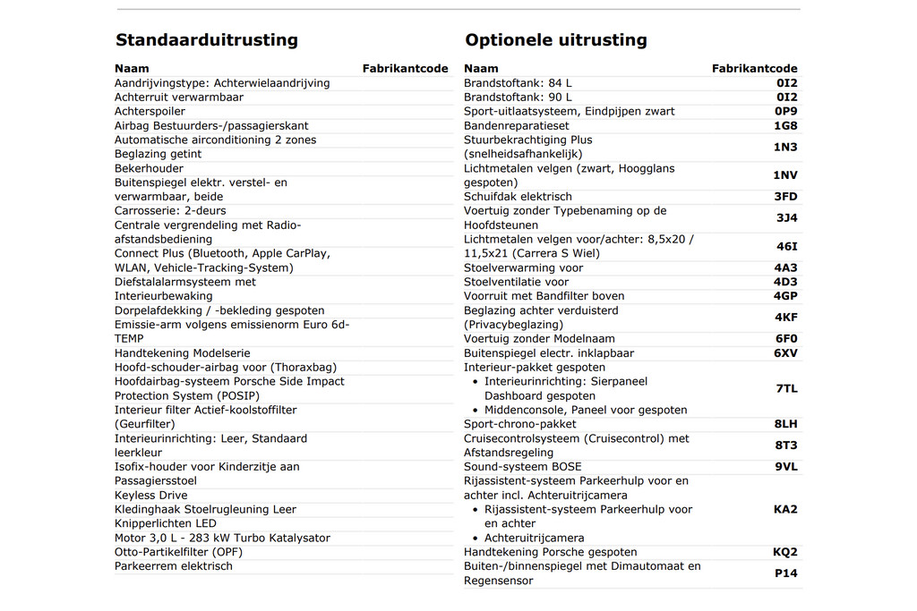 | Porsche Merk | 911 Model | 2020 Bouwjaar | 2 Aantal deuren | Leder Bekleding | 385 PK Vermogen |