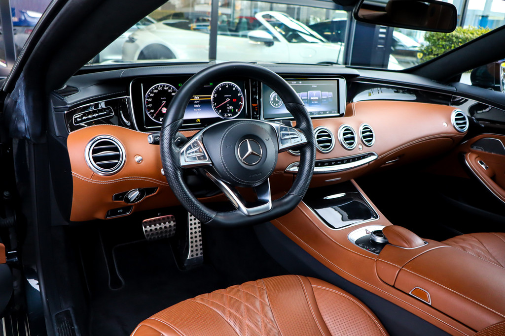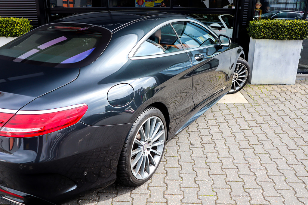 In nieuwstaat verkerende S400 Coupe in MANUFAKTUR Magnetietzwart metallic én bruin leder exclusief met stoelventilatie, Burmester Premium Audio, Distronic+, Mercedes onderhouden, Sfeerverlichting!
