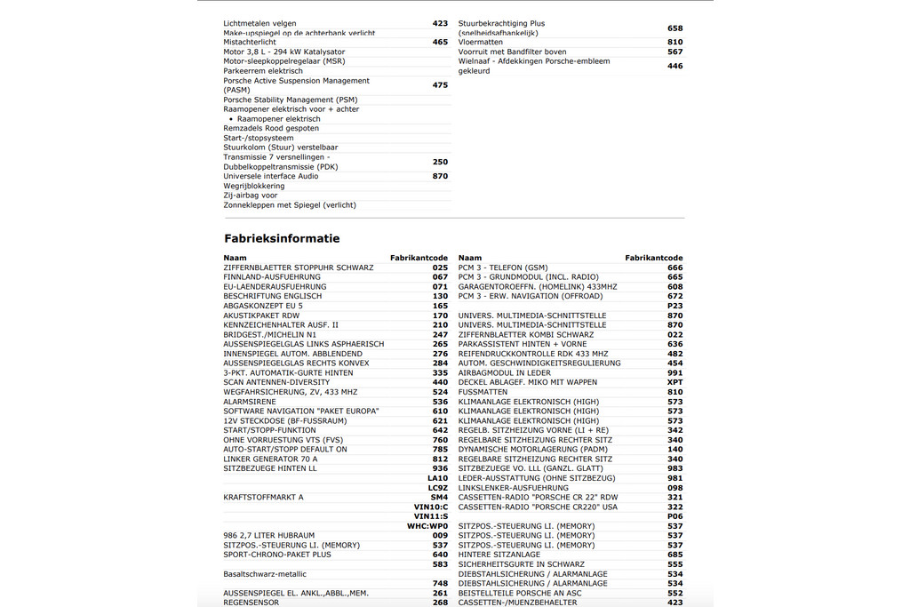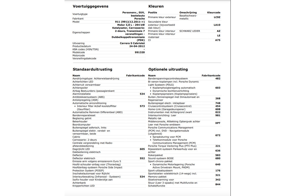 | Porsche Merk | 911 Model | 2012 Bouwjaar | 2 Aantal deuren | Leder Bekleding | 400 PK Vermogen |