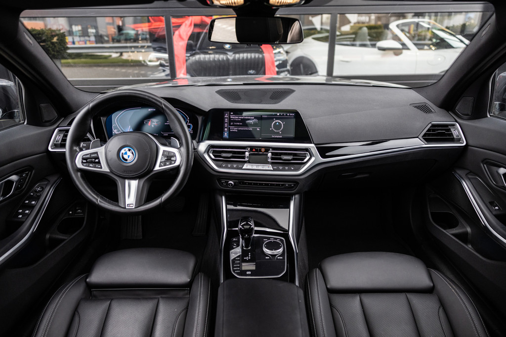 In nieuwstaat verkerende 330e met M-sport onderstel en velgen, vollederen bekleding met geperforreerd leder, Hi-Fi Premium Audio met meervoudige speakers, LED Laser, Shadow zwarte sierdelen, Active Cruise!